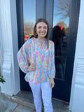 Looking for a playful and versatile addition to your wardrobe? The Lilly Pink Top is a great transition piece with its spring colors, perfect for adding a pop of fun to any outfit. Say goodbye to boring and hello to quirky fashion.