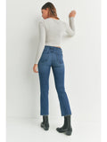 Slim through the hips and thighs, then gently flared at the hem—this cropped denim is basically a style cheat code. The perfectly pitched length shows off your favorite shoes while the subtle stretch keeps you comfy all day long. Dark, versatile, and undeniably cool, this high-rise crop flare is about to become your go-to for everything from casual Fridays to weekend adventures.