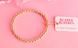 Get ready to rock your wrist game with Beaded Blondes' Gold Beaded Bracelet! With its unique design and versatile style, these bracelets are the perfect addition to any outfit. Plus, the ability to build your own stack means endless styling possibilities. A must-have accessory for any fashion-forward individual!