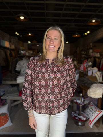 FINAL SALE - Arielle Jacquard Mania Bow Top