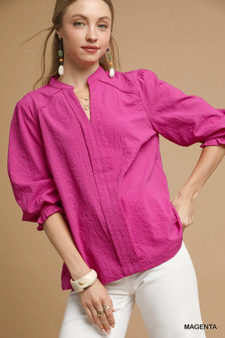FINAL SALE - Solid White Poplin Pleated Sleeve Top