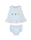 "Get your little one ready for a day on the green with our Golf Pinafore Set. This quirky set includes a stylish girls' dress and matching bloomers for a complete look. Perfect for any aspiring golfer, this set will have your child looking cute and feeling confident on the course!"