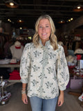 Brighten your wardrobe with the Eliza Top, a playful mix of classy ivory fabric and charming green floral embroidery. Perfect for adding a fresh, flirty touch to any outfit, this top pairs effortlessly with jeans or skirts for a look that’s both elegant and fun. Embrace a lighthearted style that’s as lively as you are!