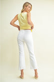 White High Rise Crop Flare w/ Distressed Hem Pant