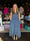 Elevate your wardrobe with the Nina Maxi Dress, a timeless sleeveless design in rich navy with an eye-catching print. This flowing maxi silhouette offers effortless elegance for any occasion—from casual daytime outings to evening events. The breathable, lightweight fabric keeps you comfortable while the classic navy palette pairs seamlessly with your existing pieces. Perfect for creating versatile looks that transition from season to season, the Nina Maxi Dress is an investment piece that delivers both style and practicality.