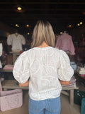 Elevate your everyday wardrobe with the Sandy Top, a timeless piece featuring delicate white floral embroidery that adds sophistication to any look. The intricate needlework brings texture and visual interest, making it perfect for layering or wearing solo. Crafted for comfort and style, this versatile top transitions seamlessly from casual daytime wear to evening occasions. Whether paired with jeans, skirts, or tailored trousers, the Sandy Top delivers effortless elegance that complements any personal style.