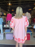 Heart Embroidery Mini Dress Pink & Red
