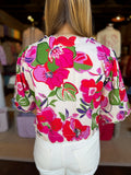 Bloom into spring with the Frankie Floral Top in Pink! This charming piece features a vibrant floral print that brings garden-fresh style to your everyday wardrobe. The relaxed fit and soft fabric make it perfect for casual outings, weekend brunches, or layering over your favorite basics. Whether you're heading to the farmers market or catching up with friends, this top adds a pop of color and personality to any look. A wardrobe essential that celebrates the beauty of florals in the most delightful way.