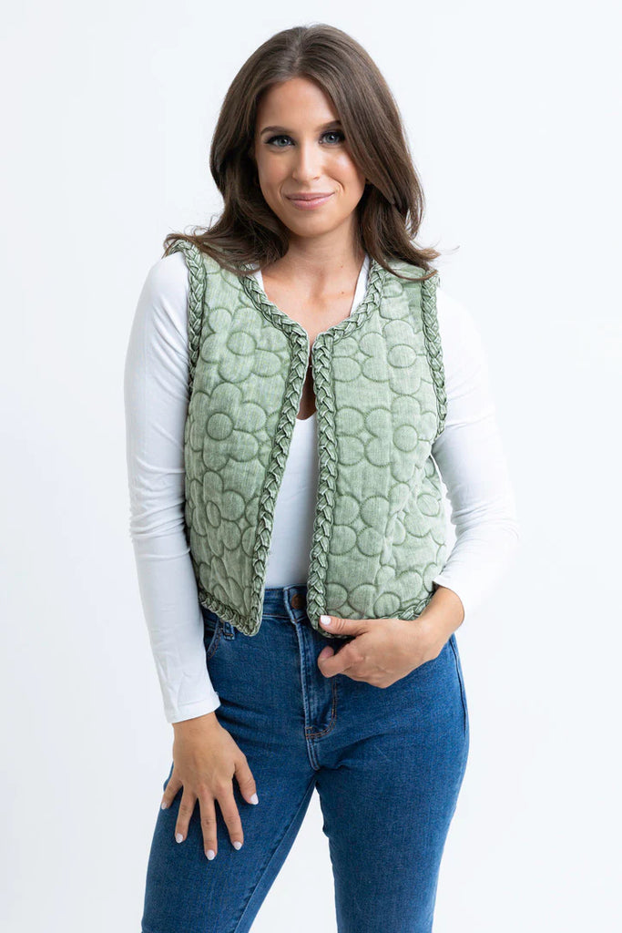 FINAL SALE - Olive Denim Floral Vest