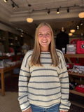 Ramie Knit Striped Sweater Top Navy