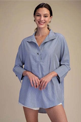 China Collar V-Neck Bubble Sleeve Poplin Top