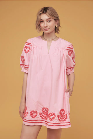 Heart Embroidery Mini Dress Pink & Red