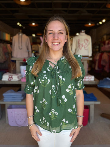 Friona Eyelet Puff Sleeve Top Kelly Green