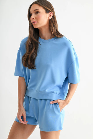 Sky Textured Half Sleeve Sweater Top