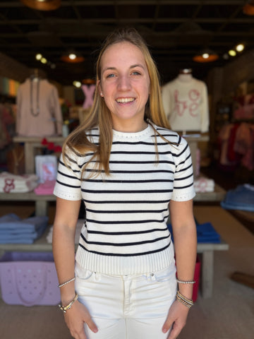 Navy Tessie Stripe Short Sleeve Sweater Top