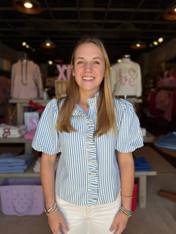 Striped Ruffle Short Sleeve Button Up Top