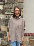 This oversized button-up blouse is an ideal choice for fall, offering cozy comfort and effortless style. Its relaxed fit allows for layering, while the soft fabric keeps you warm on crisp days. Perfect for both casual outings and office wear, this blouse combines versatility with a flattering silhouette that complements any look. Elevate your autumn wardrobe with this timeless staple.
