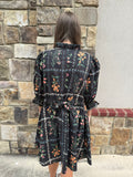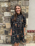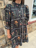 Black Floral Ruffle Puff Sleeve Mini Dress