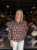 Elevate your wardrobe with this charming Marie Top in a gorgeous brown and pink color combo that's impossible to resist. The long sleeves keep things cozy while the button-up front adds a touch of effortless sophistication. Perfect for layering or wearing solo, this playful piece brings personality to any outfit. Whether you're dressing up for brunch or keeping it casual, the Marie Top is your new go-to for style that feels just right.