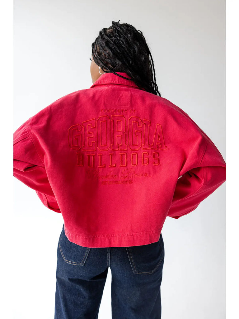 The Georgia Sanders Embroidery Canvas Twill Jacket is your ticket to turning heads at every tailgate and beyond. Crafted by Gameday Social Apparel Co.® with premium canvas twill construction, this women's jacket combines durability with undeniable style. Featuring eye-catching embroidery details, it's the perfect blend of collegiate spirit and modern fashion. Whether you're cheering from the stands or making a statement around town, this red jacket proves that gameday style doesn't have to end when the final whistle blows. Reinvent your wardrobe with a piece that's as bold as you are.