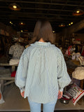 Stripes meet ruffles in this delightfully charming top that's ready to turn heads. The crisp green striped pattern pairs perfectly with pleated detailing and a flirty ruffle trim that adds just the right amount of personality. Whether you're dressing up for brunch or keeping it casual, this piece brings effortless style and a touch of whimsy to any outfit. A wardrobe essential that proves stripes are always in season.