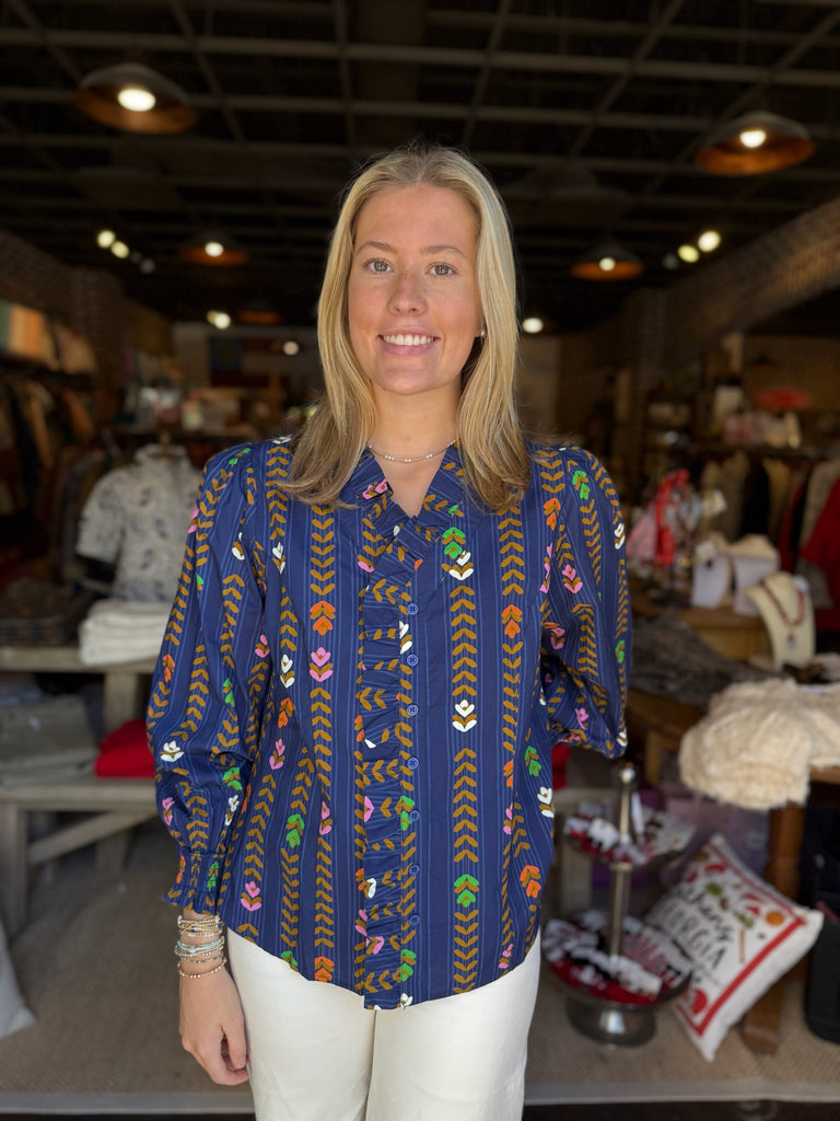 Midnight Mix Floral Top Embrace the night with a twist of botanical charm. This playful floral top blends moody midnight tones with vibrant blooms for a look that's equal parts mysterious and fun. Perfect for those who refuse to choose between edgy and elegant, it's your go-to piece for turning heads at any gathering. Layer it, tuck it, or let it flow—this versatile top adapts to your mood as easily as you do.