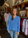 FINAL SALE - Blue V-Neck Print Top