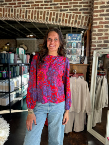 Navy Pintuck Scallop Trim Long Sleeve Top