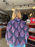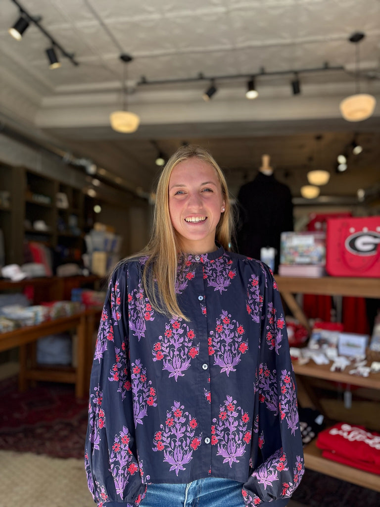 Add a splash of charm to your workday with the Navy Vira Top. Its delicate floral pattern on a deep navy background keeps things professional yet fun, perfect for brightening up any office outfit. Comfortable and stylish, it’s designed to keep you feeling confident and looking effortlessly chic from meetings to after-hours.