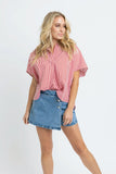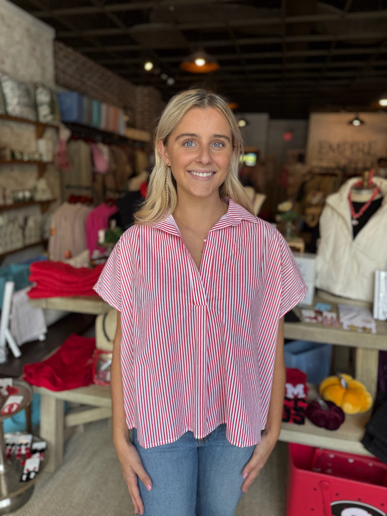 Make a bold statement on game day with this oversized red stripe top. Its boxy fit ensures comfort and effortless style, while the signature stripe collar adds a distinctive touch. Perfect for showing your spirit with a relaxed, confident look.