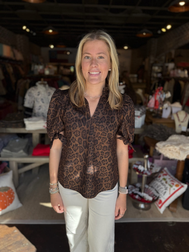 Make a bold fashion statement with this leopard short sleeve top, complete with an eye-catching ruffle collar that elevates your everyday style. The timeless animal print works seamlessly with any wardrobe, giving you endless styling possibilities while the playful ruffle detail ensures you'll stand out from the crowd. Comfortable, versatile, and undeniably chic—this is the piece you've been waiting for.