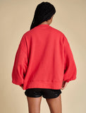 This updated pullover brings fresh energy to a fan-favorite shape, with voluminous balloon sleeves and bold rhinestone star embellishments. The oversized fit and ultra-soft fleece offer effortless comfort, while fleece varsity lettering adds a classic, sporty feel. Pair it with denim cutoffs or a leather mini for game day.