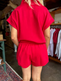 Experience effortless style and comfort with the Red Scuba Drawstring High-Rose Short. Crafted from smooth scuba material, these shorts offer a soft touch and a flattering fit thanks to the elastic waistband and adjustable drawstring. Perfectly paired with a matching top, they create a chic and coordinated look ideal for casual outings or relaxed weekends. Embrace comfort without compromising on style with these versatile shorts designed to move with you.