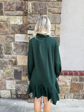 The Kim Hunter Green Dress combines playful charm with elegant comfort. This flowy mini dress features long sleeves for a graceful silhouette, while its deep hunter green hue adds timeless sophistication. Perfect for day or night, its lightweight fabric moves effortlessly, offering a fun yet refined look. Elevate your wardrobe with this versatile piece that blends feminine flair and easy style.