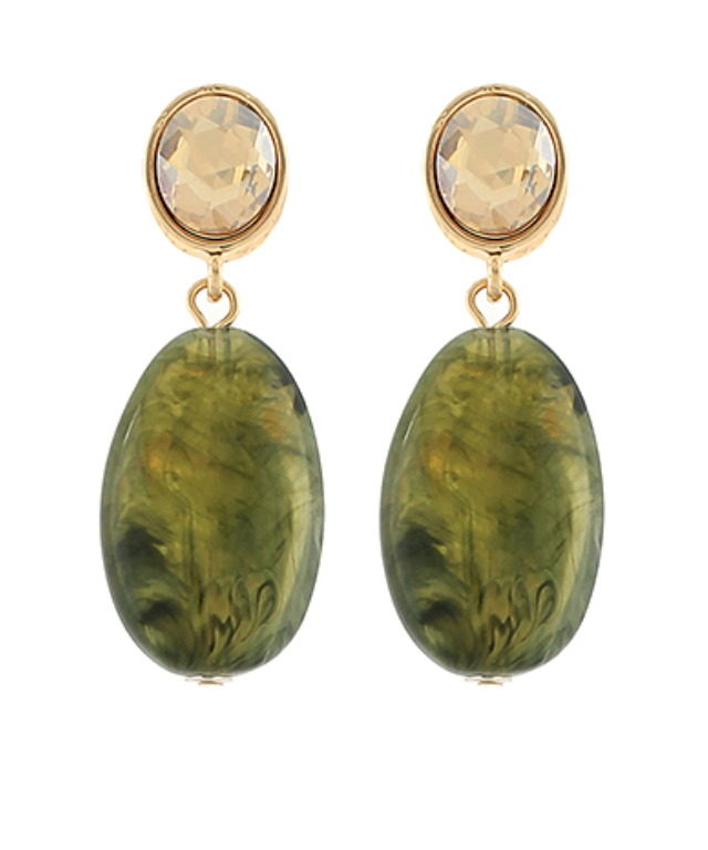 Olive Glass & Mable Stone Oval Drop Earrings