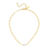 Featuring a genuine freshwater pearl nestled between paperclip links, the Penny Necklace adds a touch of whimsy to any outfit. The organic and feminine pearl contrasts beautifully with the contemporary paperclip chain for an eye-catching yet effortless look. Versatile and lightweight, this necklace makes the perfect gift or is a lovely addition to your own jewelry box.