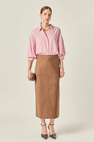Pink/Tan Striped Balloon Sleeve Top