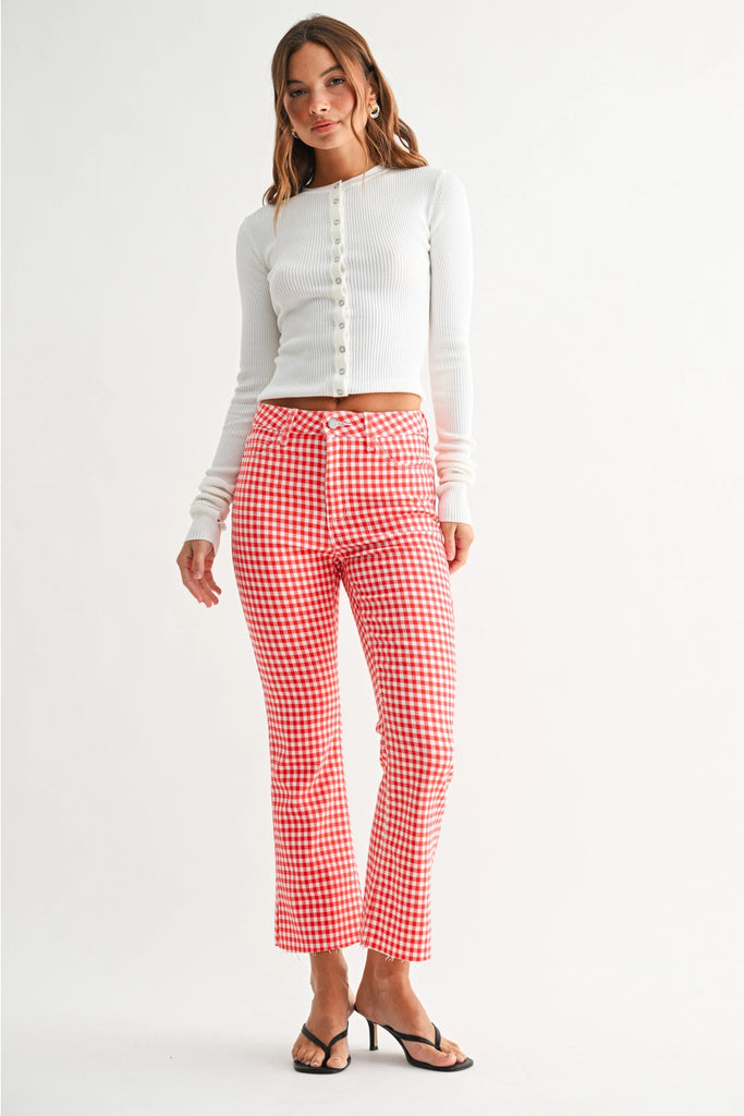 Red Gingham High Rise Tonal Crop Flare Pant